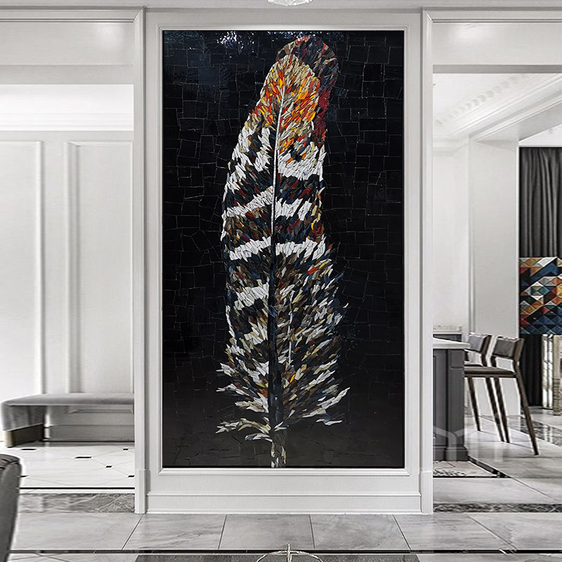 镶嵌设计师高级羽毛马赛克装饰画 客餐厅电视背景墙瓷砖拼图剪画热门设计联盟服务商