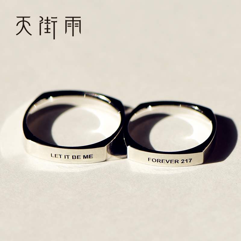 正品天街雨多边形 S925银戒指 原创设计简约 镀白金男女情侣对戒热门设计联盟服务商