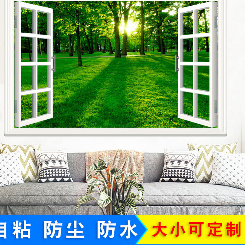 3D假窗自粘贴纸壁画宿舍卧室床头影视墙壁温馨风景装饰墙壁画贴画热门设计联盟服务商