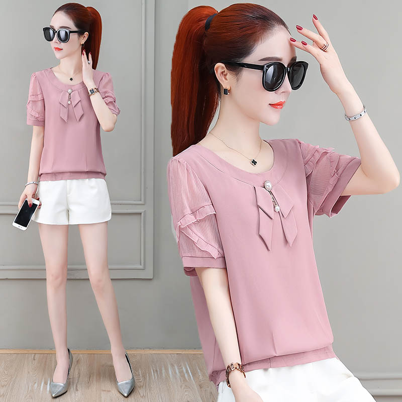 很仙的雪纺衫女短袖2020今年新款夏装上衣超仙洋气设计感小衫掐腰热门设计联盟服务商