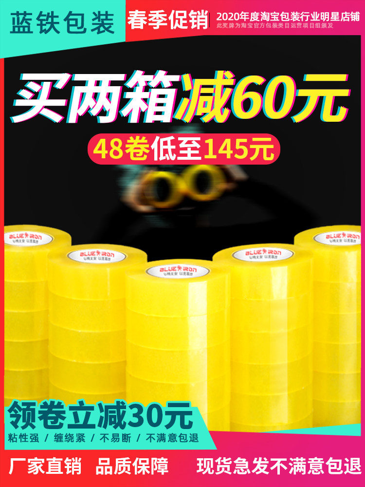 透明胶带快递打包胶布封口胶纸淘宝透明胶带包装大卷封箱胶带整箱热门设计联盟服务商