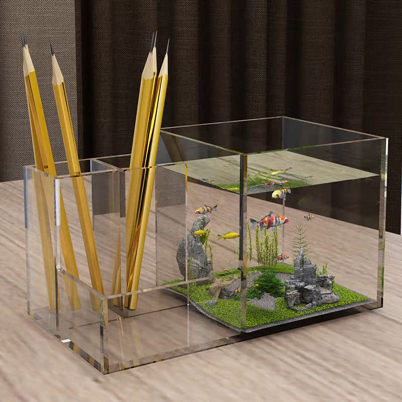 鱼缸造景小型摆件办公室简约亚克力收纳盒桌面生态微景观笔筒创意热门设计联盟服务商