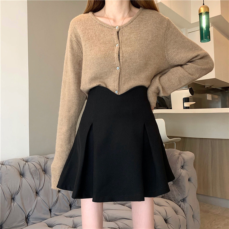 2021初秋新款时尚韩版百搭小众设计腰头V型黑色收腰半身裙A字短裙热门设计联盟服务商
