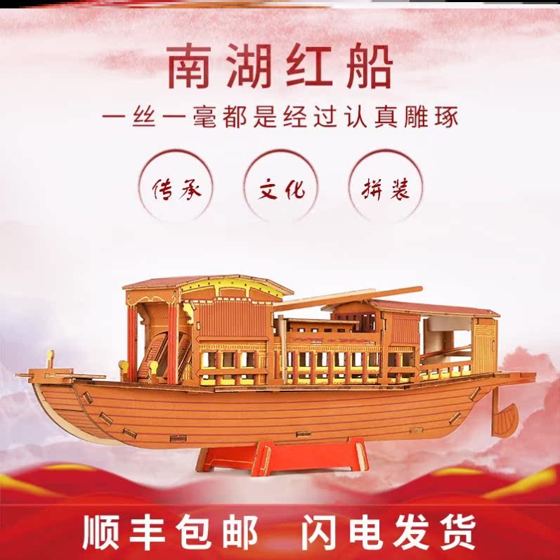 嘉兴南湖红船模型手工diy拼装道具建党手工艺成品摆件精神展览馆热门设计联盟服务商